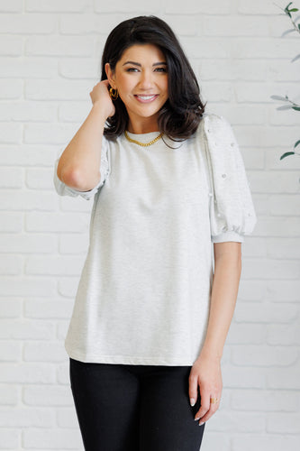 Diamonds and Pearls Puff Sleeve Top in Light Grey